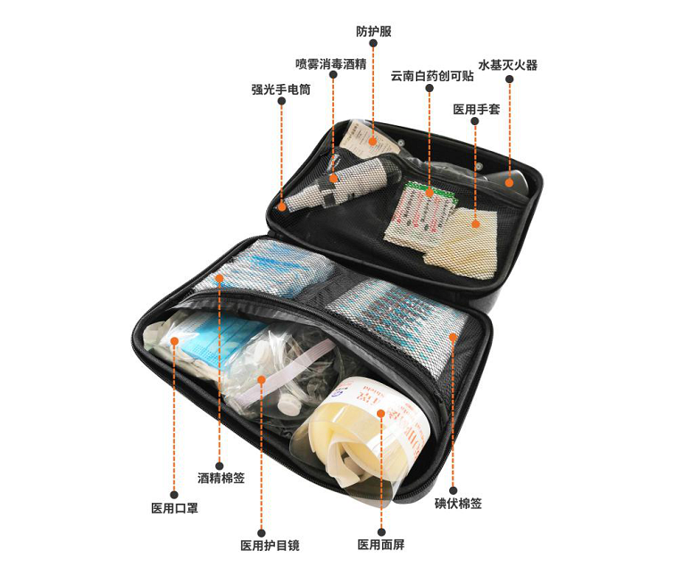防疫應急包主要應用突發災害事故時惡劣環境下使用,內部功能分區合理,物品取用更方便;配置全面、科學,配置了適合地震、火災,疫情等意外災害事故時的防災應急自救用品,滿足從日常保健到災難自救逃生、從戶外旅行到野外作業防護的全面需求。