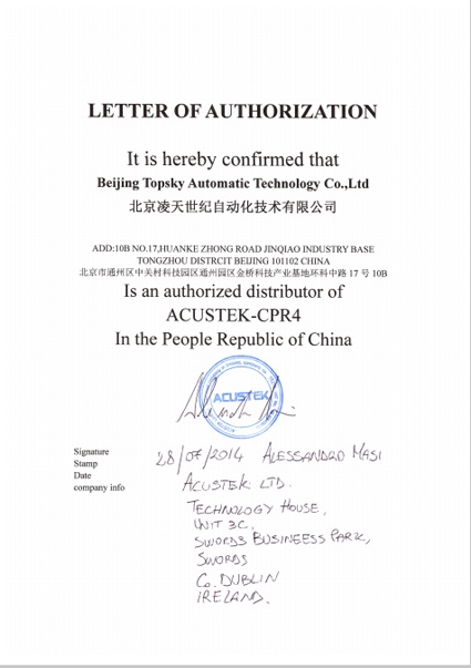 2014年7月28日,北京凌天成為 英國愛爾蘭ACUSTEK 公司 穿墻雷達(dá),門縫窺視儀 一級代理
