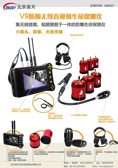 ★無線數(shù)據(jù)傳輸,可將救災(zāi)現(xiàn)場的圖像無線傳輸?shù)骄葹?zāi)指揮部,配置無線視頻接收器,存儲8GB,可存儲搜索視頻。(獨有技術(shù))
