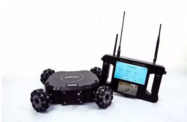 四輪全方位升降偵察機器人是一款集全方位視頻監控、可升降云臺、有毒有害氣體探測系統為一體的移動偵查平臺。體積小,有較強的攀爬和越障性能,可部署在狹小空間,威脅、危險區域執行隱秘偵察和監測任務。配裝的后場手持終端實時顯示移動端全景圖像,操作人員可以隱蔽觀察控制,通過手持端圖像或數據信息完成前端環境判斷,降低了在建筑物、地下室、山洞、隧道、街巷和可疑氣體泄漏區域內行動的危險性。
