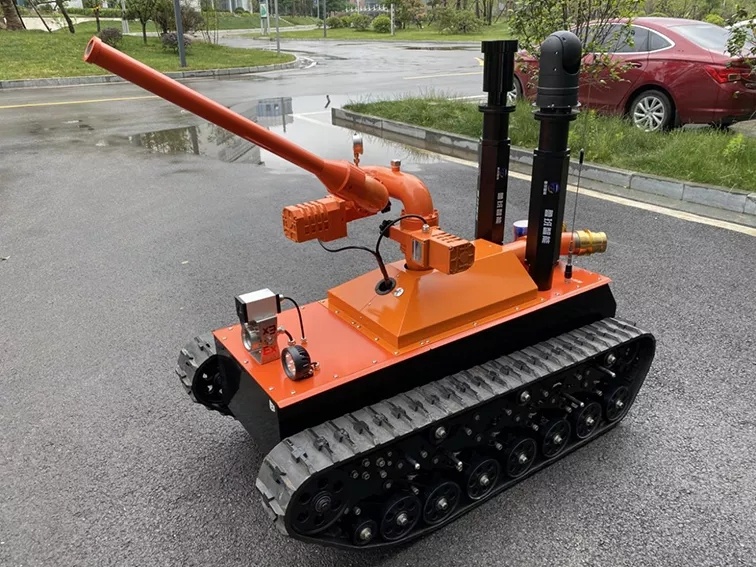 消防干粉滅火機器人作為特噴射種機器人的一種,采用鋰電池電源作為動力電源,使用無線遙控的方式遠距離操控粉劑物料機器人,能夠與粉劑物料車連接,通過噴射粉劑進行滅火等作業。可使用于各種大型石油化工企業,隧道、地鐵等不斷增多,油品燃氣、毒氣泄漏爆炸、隧道、地鐵坍塌等災害隱患多發地,滅火機器人在搶險救援中發揮舉足輕重的作用,主要替代消防員在危化火場或濃煙火災現場救援的專用設備