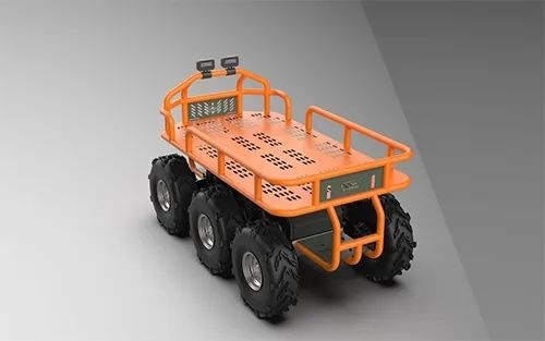 救援伴隨運輸機(jī)器人是一個6x6驅(qū)動,采用6臺直驅(qū)輪轂電機(jī),電子差速轉(zhuǎn)向的無人平臺。可以穿越狹窄的小路,陡峭的山坡和茂密的叢林。僅僅使用內(nèi)部鋰電儲能,這輛車可以行駛50多公里。該車的鋰電驅(qū)動動力系統(tǒng)提供無聲操作能力。該系統(tǒng)的模塊化架構(gòu)和與機(jī)器人操作系統(tǒng)協(xié)議的完全兼容性使得車輛易于升級,使用各種各樣的模塊化任務(wù)有效載荷。每個表面的硬點都允許重載荷和裝甲包安全地安裝在車輛的框架上。可以實現(xiàn)自動跟隨車輛或人員行走、最大運動速度可達(dá)≥15km/h,自動跟隨目標(biāo)行進(jìn),具備主動避障功能,可攜帶救援設(shè)備及物資進(jìn)行運輸,突破我國大多數(shù)道路條件下的“最后一公里”,可充當(dāng)救援擔(dān)架,運輸傷患撤離危險區(qū)域,可配備增程式發(fā)電機(jī)提高超長續(xù)航,網(wǎng)絡(luò)化傳輸機(jī)器人信息參數(shù)后臺話傳輸管理、GPS/北斗雙模定位等特點。
