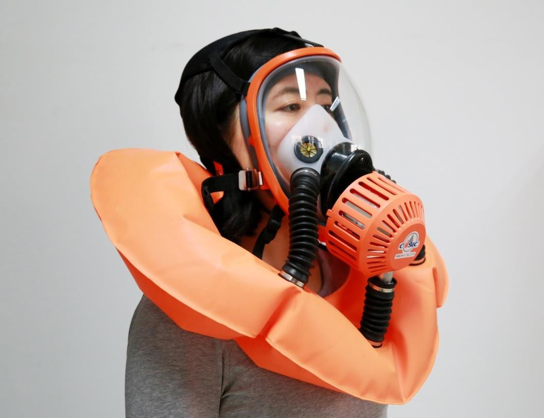 產(chǎn)品采用了航天空氣再生技術(shù)、空氣可控緩釋技術(shù)、一體化熱控技術(shù),實(shí)現(xiàn)了小型化、便攜式、內(nèi)循環(huán)空氣再生,可長(zhǎng)時(shí)間提供安全、舒適的呼吸防護(hù),核心指標(biāo)優(yōu)于國(guó)家標(biāo)準(zhǔn)及其他類(lèi)產(chǎn)品約 50% 以上。該產(chǎn)品有效解決了現(xiàn)有過(guò)濾式逃生面罩“安全性能極差”、消防呼吸器“使用復(fù)雜”、“效費(fèi)比低”等痛點(diǎn)問(wèn)題,具備消防火場(chǎng)救援、公眾佩戴逃生自救等多重應(yīng)急救援功效。