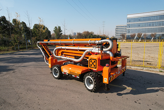 具有液壓調平支腿,臂架作業時保證整機水平,防止發生傾翻,以及支腿安全報警,車體傾斜報警,舉升避障、舉升限制、上下互鎖、風速報警等安全保護功能,進一步提升機器人舉高噴射作業安全性。