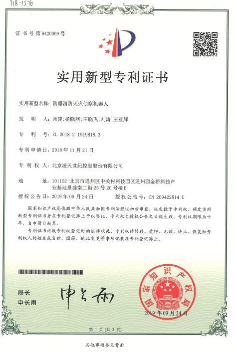 | 獎項類 | 2019獲得第一屆安全科技進步獎 | 防爆消防滅火偵察機器人 |
