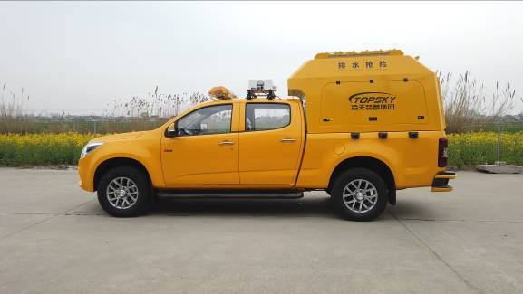 救險車(皮卡排澇車),具有大流量排水搶險功能,采用多功能貨車(皮卡)整車為運輸載體,搭載模塊化的分體/整體式鋁合金廂體,可與運輸車輛分離,獨立進行供排水作業,廂體內部安裝有柴油發電機組、移動排水泵、電控系統及安全防護裝置。可用于地下車庫、隧道、涵洞、城市狹小道路、居民小區等環境的排澇救援,城市內澇災害,可實現對積水的快速排洪救援;可為農田進行抽水灌溉,進行抗旱救災;以及火災撲救時遠程供水的取水模塊。該模塊除排水抗澇外,可為外部裝置實施供電,為作業時場地實施夜間照明,以及可選裝100kg起吊,前部安裝有2t牽引絞盤進行自救,還可選裝高清云臺遠程監控,對作業區域實施無人化管理。