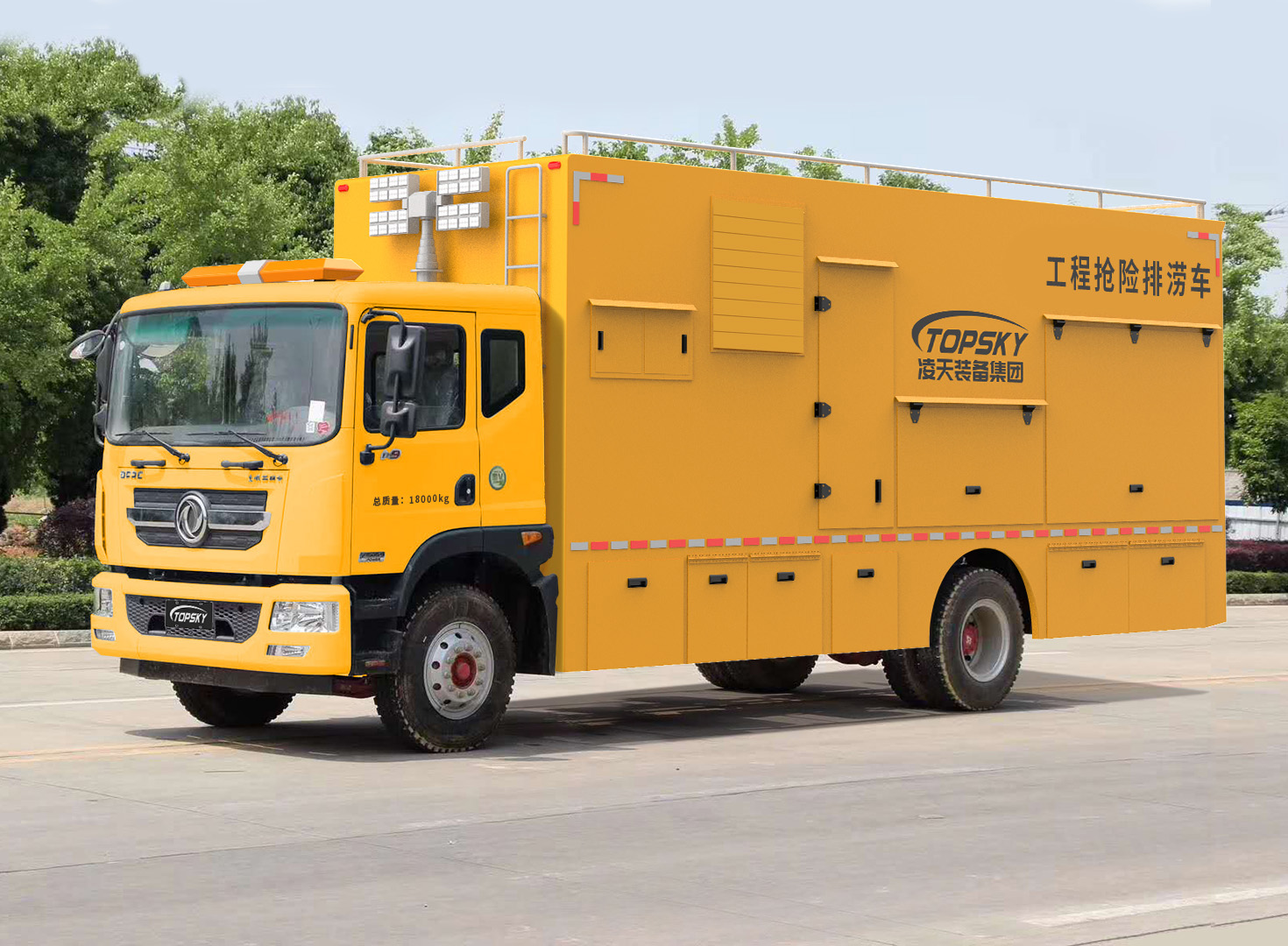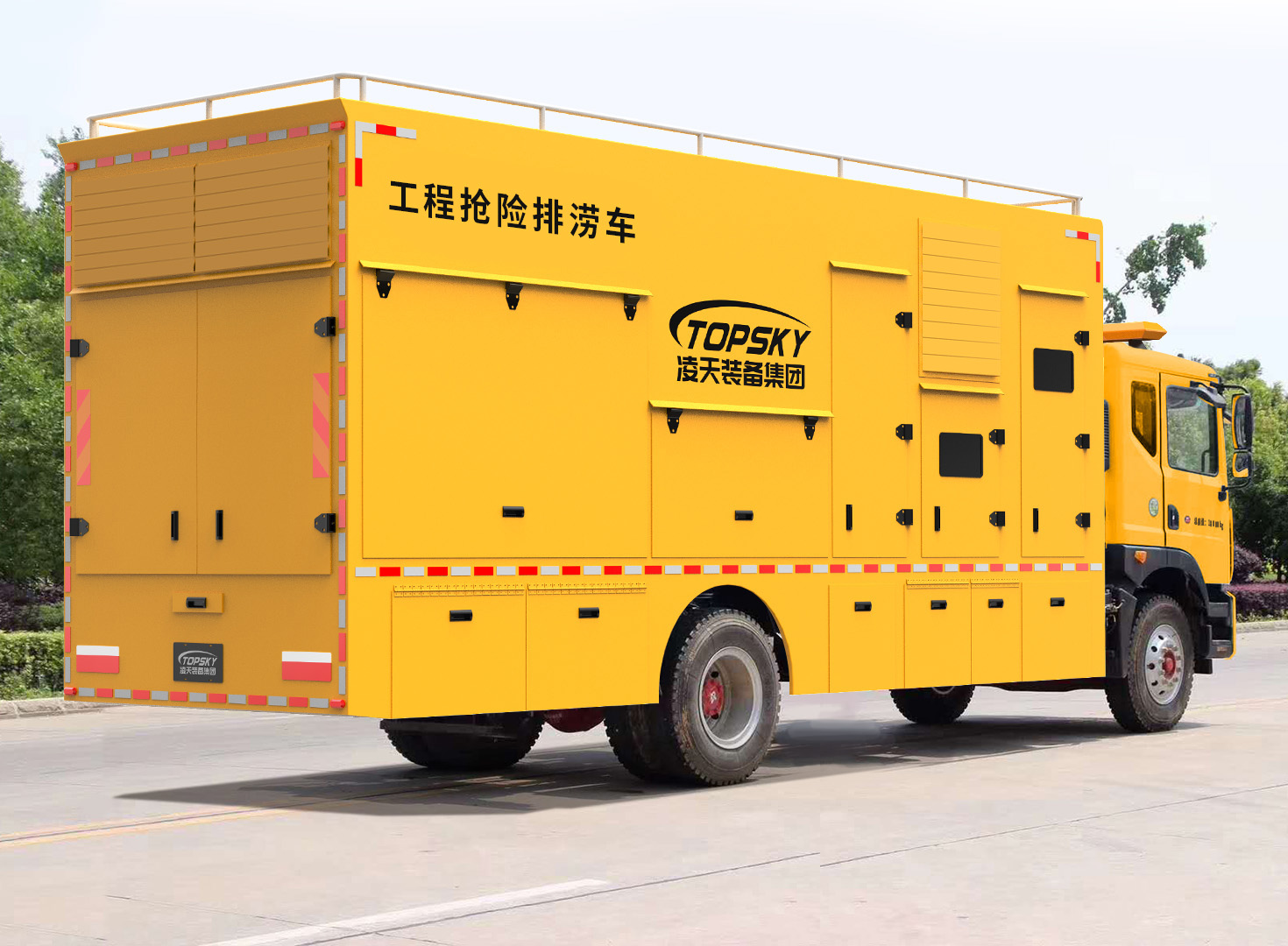 3.整車布局合理分電源動力區、指揮休息區、設備操作區,整車不超重、排水流量大;