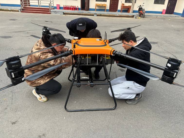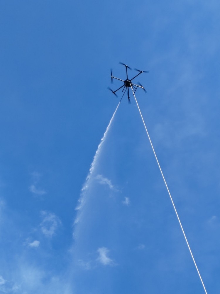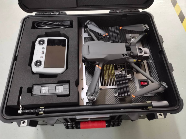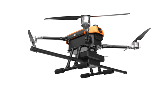 本無人機(jī)為北京凌天智能裝備集團(tuán)研發(fā)的陸空兩棲航磁探測無人機(jī),采用四旋翼機(jī)身設(shè)計(jì),載重大,續(xù)航長,并且機(jī)體折疊標(biāo)準(zhǔn)化負(fù)載接口。同時(shí),該無人機(jī)具備陸空兩棲功能,可以在地面行駛,行走系統(tǒng)可快拆。