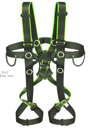 全身安全帶, 肩帶及腳帶可調,有兩個防墜落系縛點, 分別具有胸部、背部,重里800g,拉力: 22KN, 操作方便,安全。有消防檢測報告、消防認證、CE