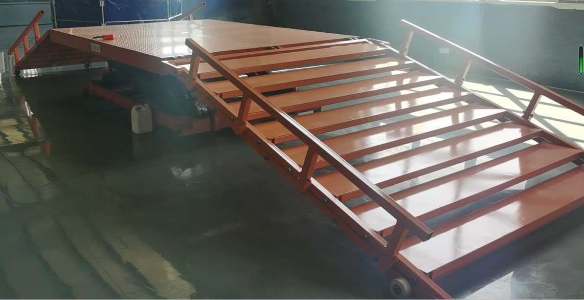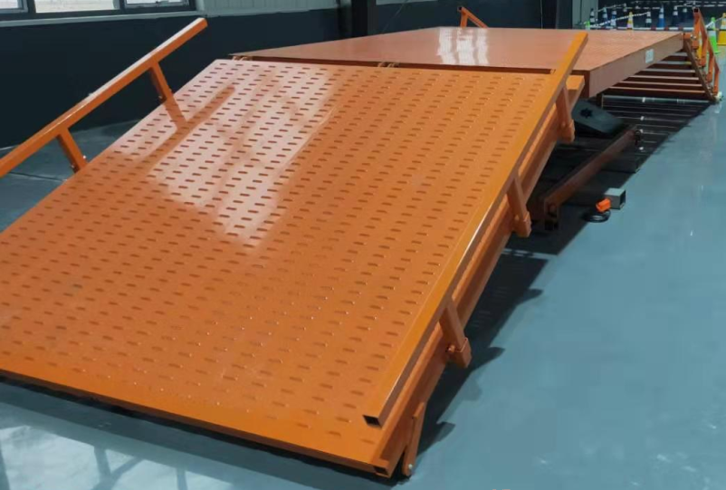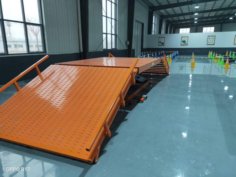 特種機器人爬坡性能檢測裝置可用于各種特種機器人爬坡、側傾倒、爬樓梯的性能測試。表面烤漆,整體防銹。整體分為兩側不同的測試板塊,一側為爬坡與側傾倒測試板,表面為標準防滑板,防滑板底部有方管加固架,保證板面強度。 另一側為爬樓梯測試板,臺階尺寸根據相關檢測標準制定。中間為可升降平臺,可調節不同的高度,從而滿足兩側邊測試板尺寸要求。