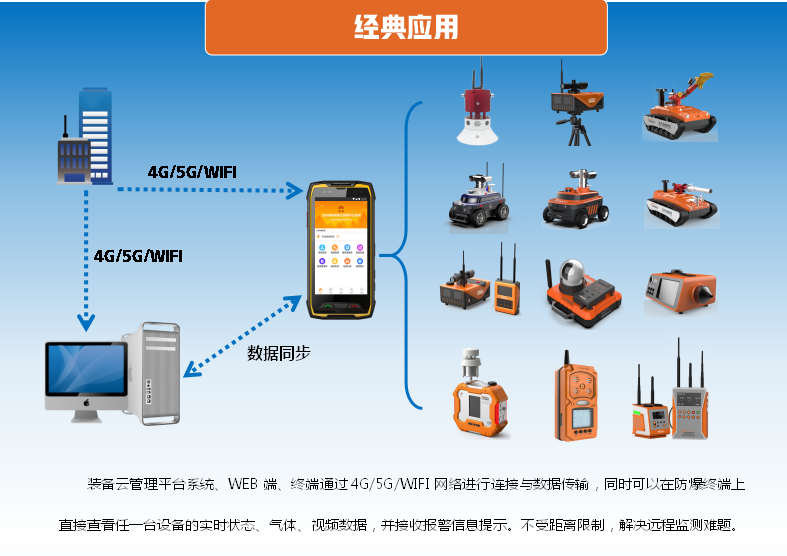 應急消防裝備云管理平臺系統能夠直接通過職能人員手持的防爆終端,直接讀取系統內所有的裝備、設備及具體的詳情、圖片、位置、傳輸的數據,根據裝備具有特性進行實時在線監測,當監測到的數據超標時,實時進行報警及查閱報警信息。該平臺系統能夠結合智能防爆終端本身功能、北斗定位/GPS定位、錄像、拍照等進行信息存儲,隨時隨地查閱裝備庫、維修庫、報廢庫等級占比利用率分析,最終進行數據統計分析處理。此外該系統支持本地化業務拓展,如:現場監控、無線打印,保障此平臺系統在不同環境中的應用與融合。