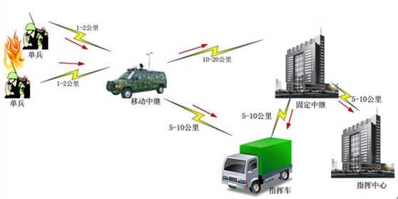 可做單兵發(fā)射-指揮監(jiān)控車或單兵發(fā)射-指揮監(jiān)控中心等應(yīng)用。